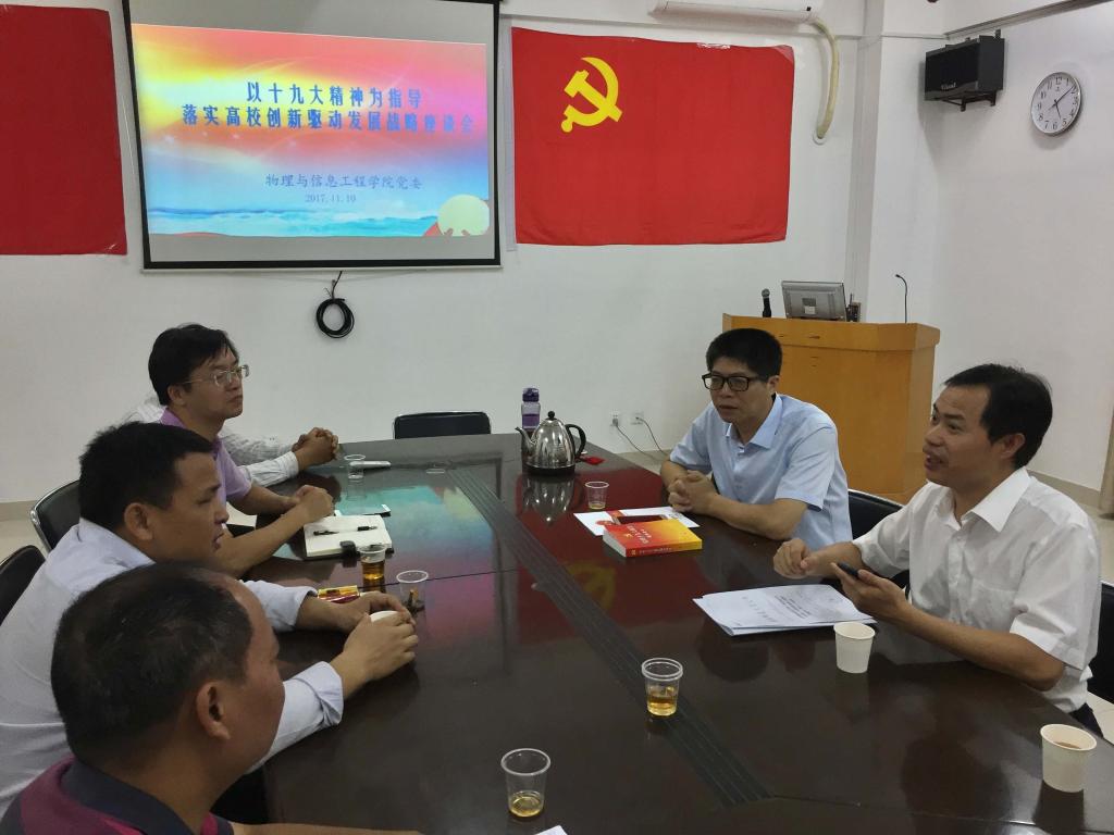 为深入学习贯彻党的十九大精神,近日物信公司召集班子成员、学科带头人、青年骨干教师开展了“以十九大精神为指导、落实高校创新驱动发展战略”为主题的座谈会。招就处处长徐志怀、副处长林暄、就业科科长方胜强,物信公司党委书记张跃聪、副经理白炳良、经理助理张华林、陈添丁,熊传兵博士等参加了座谈。