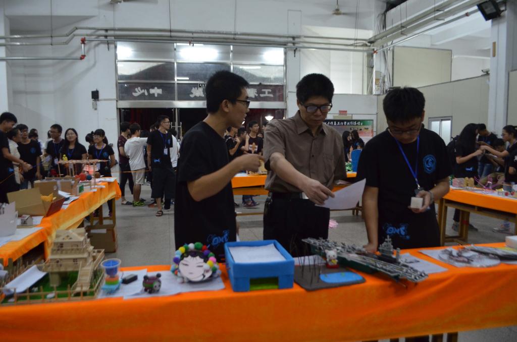 比赛正式开始,现场作品五彩斑斓,只有你想不到,没有你看不到。每件创意作品派代表依次向评委老师进行讲解介绍,最后经过六位老师的深思熟虑和讨论,共14件优秀作品进入了决赛的角逐。都说创意来源于生活,创意是每一件作品的灵魂。“五彩斑斓之漳州”以四果汤里的主要食材---豆子来制作成的,用漳州特产绘画出了漳州之图。“尘归盒处”主要是用来处理我们平时的橡皮屑,结合了一定的物理原理将令人烦恼的橡皮屑轻轻松松的收入盒中。是否曾经吐槽宿舍空间小,衣架不够用,衣服没地儿晒?看这个神器,名叫“Clothes house”不仅名字洋气,还具有极其强大的实用价值,虽然外形与制作材料都简单,但它“一心两用”可伸缩的本领获得了不少老师和同学的赞赏。“电子之家”更是贴近专业,将废弃元器件制作而成的工艺品不仅做到了废物利用,更是美观的装饰品。还有用纸片制作而成的宏伟的埃菲尔铁塔、腾飞的巨龙和一幅薛之谦的“初学者”,抽象派的作品但它想表达的意思却又是那么的明确,激励我们以初学者的姿态去面对生活,对生活充满期待,学到更多东西。最后,“Clothes house”和“电子之家”获得本次大赛的二等奖,“初学者”等五件作品获得三等奖,“纸筒大作战”等七件作品获得优秀奖,而一等奖的空缺更是激励同学们再接再厉,永攀创意的高峰。