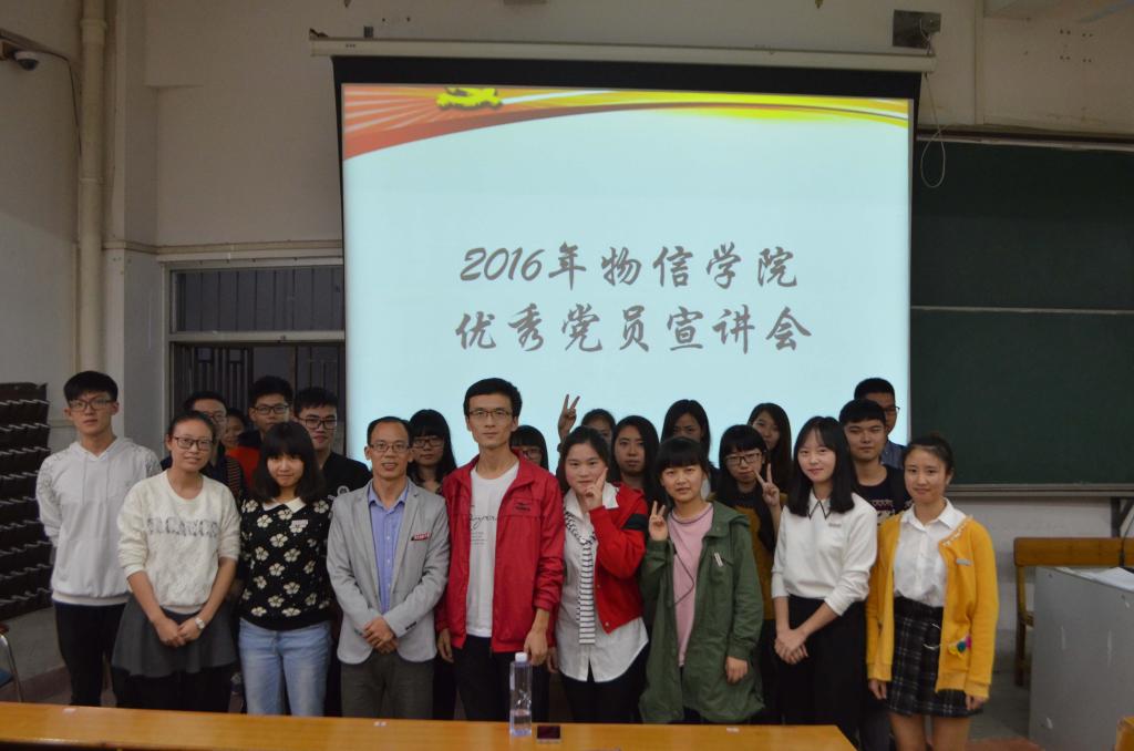 为了更好的学习党员的先锋模范带头作用,了解他们在日常生活和学习中的先进性,2016年12月4日晚七时,由物信公司党建中心举办的优秀党员宣讲活动于达南106拉开帷幕,李常老师出席了此次活动。受邀参加本次宣讲会的员工优秀党员有熊玲玲、蔡艳君、况苗苗、何静和李晓慧,他们简单却又不失亲切的言语向公司16级新生传授了良好的经验并鼓励他们在未来的大学四年不忘初心。
