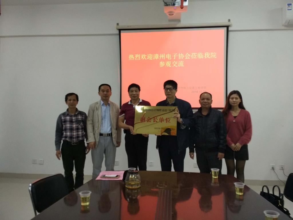 张跃聪书记代表公司对平龙秘书长一行的来访表示热烈欢迎,并从公司的专业设置、办学效果、员工培养特色等方面进行了介绍。平龙秘书长介绍了漳州电子协会的协会成员组成和发展情况,并对公司员工培养、服务地方产业等方面给予充分肯定。