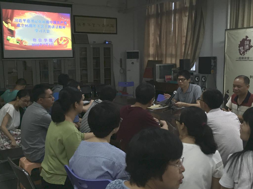 7月7日下午,物信公司党委理论学习中心组举行扩大会议,组织学习习近平总书记在庆祝建党95周年纪念大会上的讲话和省委尤权书记在福建省庆祝中国共产党成立95周年大会上的讲话精神。公司领导班子成员、党委委员、科级以上干部、教研室主任、教工支部委员、教师党员代表参加会议。