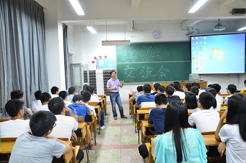 9月21日晚,物信公司新生经验交流会在达南教室分别进行。15级新生迎来了几位特殊的“客人”——物信公司周宙安教授、张华林副教授、王宇野博士等。“要把求知和做人完美结和是同学们来大学的终极目标” —— 这是周宙安教授给新生们印象最深刻的一句话,他还从“大学定位、学习路径、学会做人、加强锻炼”四个方面跟新生们交流“在大学里该做什么”这个永恒的话题。