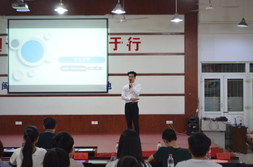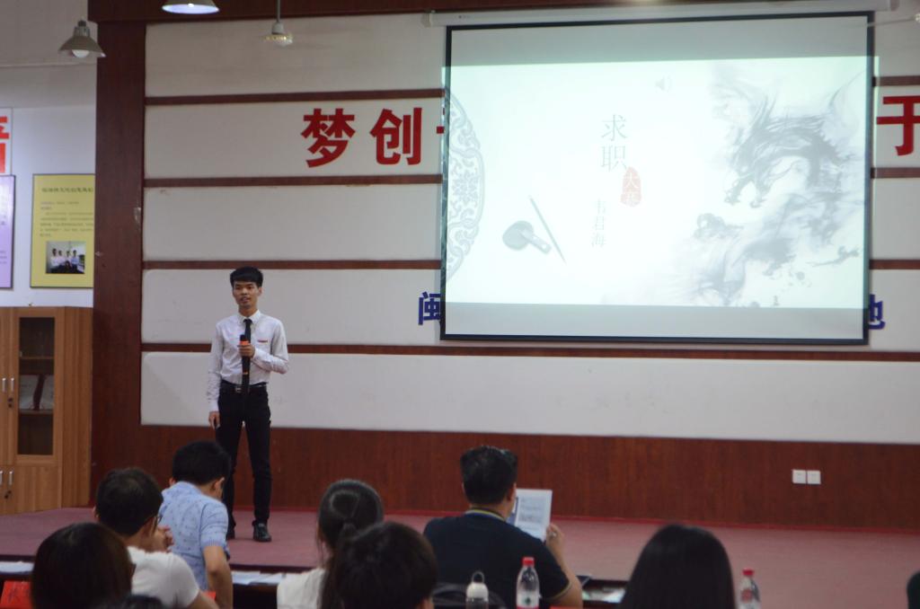 比赛分为自我介绍、情景模拟面试、评委点评、大众评审投票四个部分。内容涉及简历、职场礼仪、职业发展方向、职业规划等多个方面。在自我介绍的环节中,选手们从容不迫,侃侃而谈;对于职业发展方向,选手们各从其志,有电台主播、投资分析师、高校辅导员等;在情景模拟面试的环节中,选手们更是凭借机智沉稳的回答赢得满堂喝彩。比赛中,各参赛选手表现出扎实的专业知识底蕴和非凡的职场应变能力,现场氛围激烈,群雄逐鹿,精彩纷呈。