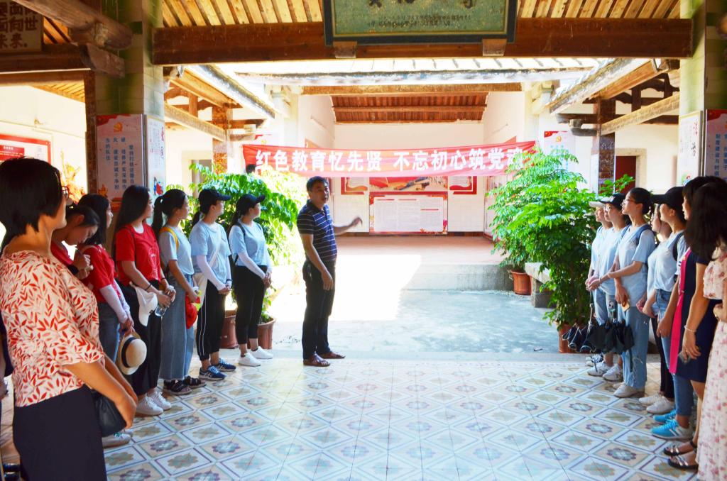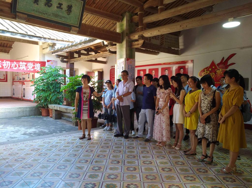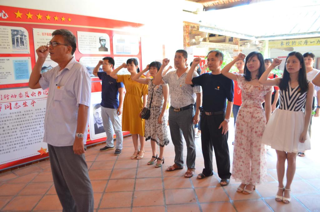 在这百年历史的漳浦县县委旧址内,在马坪镇有着几十年党龄的老党员潘志松领誓下,镇党委工作人员以及实践队党员们重温了入党誓词。接着,马坪镇中心小学黄瑞瑜董事长向实践队员们生动讲解发生在这片土地上可歌可泣的故事。马坪镇中心小学,原马坪育才小学,建成于1919年,不仅是传播知识的小学,更是传播共产主义的摇篮。1928年元月中共漳浦县委在此成立,更是发生了福建党史上有名的“漳浦农民星夜寻找共产党”之事。老党员潘志松紧接着为全体实践队同学分享了他几十年来的工作感悟和人生体会。马坪镇党委副书记郑艺真更是号召在场所有同志、同学们向潘志松同志学习,爱岗敬业、无私奉献、充分发挥党员先锋模范带头作用,更是告诫队员们要注重身体健康,在基层工作不仅要有吃苦耐劳的精神,还要求良好的身体素质,多学、多思、多做、多运动。