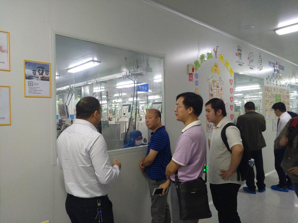 周小方经理一行对产业园区晶安光电、天电光电、信达光电等企业进行了实地走访,还在企业负责人陪同下到生产车间参观相关生产流程、交流技术要领,并与企业就员工实习就业、人才培养、产学研合作等事宜进行了深入交流,并期望通过此次考察调研能尽快搭建校企合作的平台。