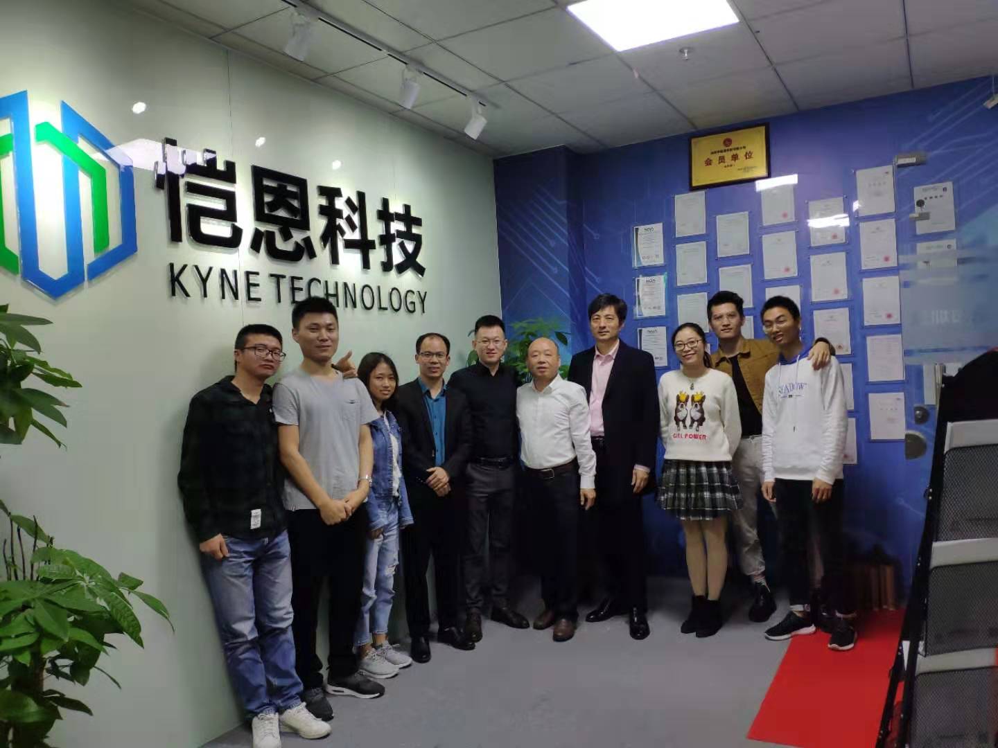 上午,周小方、杨红和一行来到04电本2班员工肖志勇创办的深圳恺恩科技有限公司,实地考察了公司的生产和运营情况。肖志勇员工向考察组一行详细介绍了公司的发展历程,申请的专利、产品的种类和应用领域,并就与母校合作开发光电传感技术、建立员工实习实践基地、深入产学研合作等方面进行了探讨和交流。