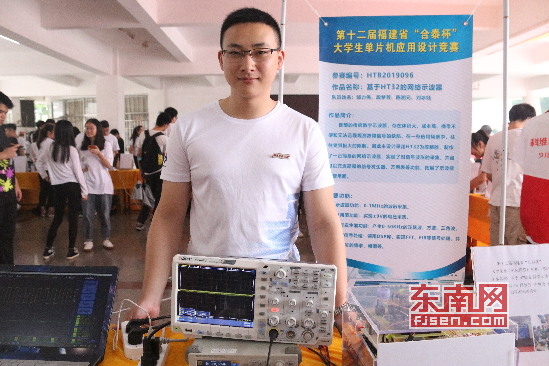 电子设计作品展区共展出设计作品47件,均是员工参加各类电子设计大赛的获奖作品。其中第十二届福建省“合泰杯”单片机应用设计竞赛一等奖作品“基于HT32的网络示波器”吸引了众多师生,该作品克服了传统数字示波器体积大、成本高和无法远程观测故障信号等缺陷,同时增加了万用表等功能,拓展了示波器的使用面。2019年校电子设计大赛决赛作品也让大家眼前一亮。基于树莓派Python环境和STM32开发板的人脸识别系统门禁,通过摄像头采集图像和网络算法,实现门禁人脸识别;“超市智能寄存管理系统”采用指纹识别技术完成开箱动作,提高便捷性与安全性,减少传统纸质小票的使用,更加环保。基于STM32的石头剪子布机械手,让现场观众玩得兴致勃勃……