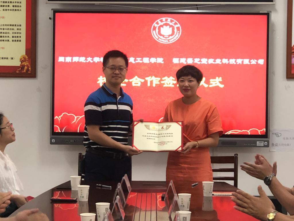 签约仪式上,福建吾芝堂农业科技有限公司简青燕总经理首先致辞,表示PA视讯有着优秀的团队和强大的科技研发创新能力,双方的深入合作,将充分发挥校企各自优势,融合创新、科研、人才三位一体,进一步加强和推动企业技术创新进步。