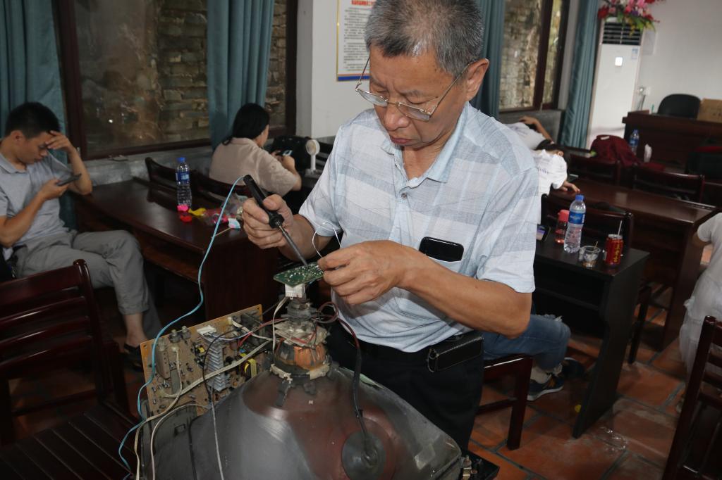 物信公司实践队发挥专业特色、学以致用,开展了“义务家电维修”“趣味实验小课堂“科普游戏互动”“课外科技作品展”等活动。义务维修开始后,维修队运用了他们娴熟的技术为当地村民带来便携,前来维修家电的人络绎不绝,那些损坏的电扇、洗衣机、电磁炉、电饭煲……在这里重新焕发了生机,带着修好的家电离开的居民们脸上无一不洋溢着幸福满足的笑容,同时对队员们的技术赞不绝口。义务维修将我们现有的技术落到实处,切实为当地民众带来了经济效益和社会效益。