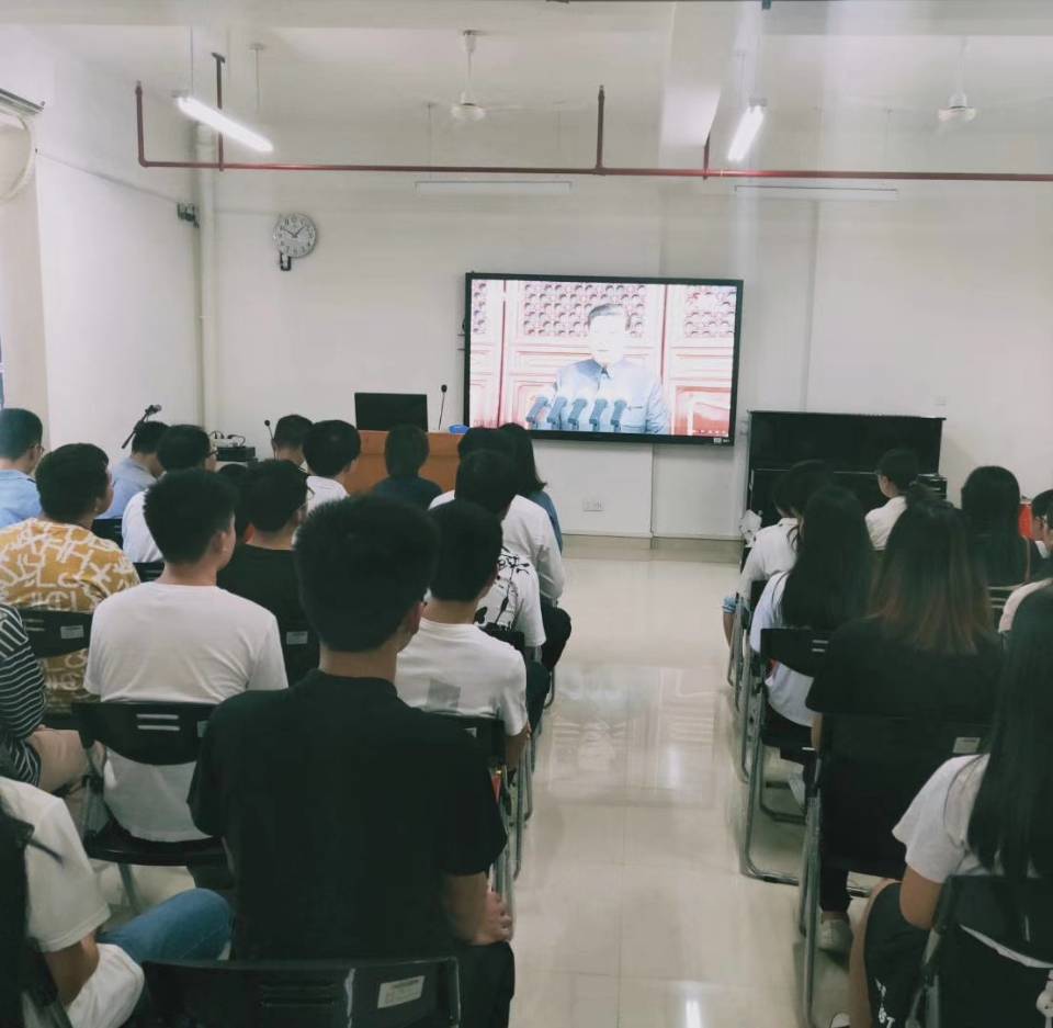 10月1日上午,刚刚参加了国庆万人升旗仪式的物信师生们又来到了科技楼南809,共同收看北京天安门七十周年国庆盛典直播。大家随着直播镜头情不自禁地欢呼起立,不时响起雷鸣般地掌声,由衷感叹70年来祖国的沧桑巨变与富强美丽。