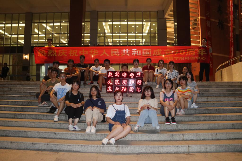 物信学子用专业所学,设计制作了国庆主题灯牌向祖国献礼,这是送给祖国母亲70周年华诞的一份礼物、一份敬爱。少年强,则国强。物信学子将带着对祖国和人民的热爱之情,刻苦学习,勤于钻研,绽放青春风采,建功伟大时代。