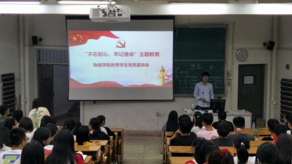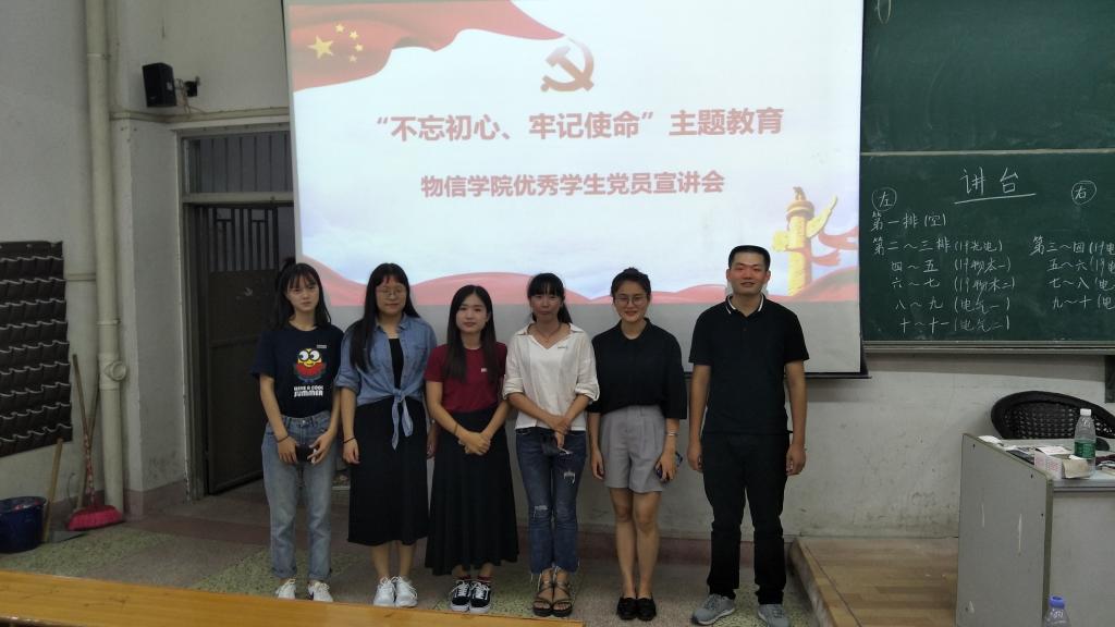 为贯彻落实习近平总书记在“不忘初心,牢记使命”主题教育工作会议上重要讲话精神,宣传秉持理想信念、保持崇高境界、坚守初心使命、敢于担当作为的先进典型,形成学习先进、争当先进的良好风尚。2019年10月12日,物信公司在达南106教室举行“不忘初心,牢记使命”主题教育优秀党员宣讲会。