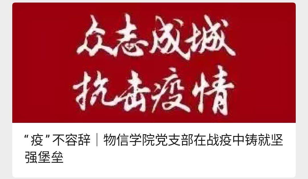 各年级团支部运用线上平台,组织大家了解疫情最新情况,科普疫情防控方法,认真开展疫情防控专题学习活动。旨在倡导共青团员在疫情防控中肩负起新时代青年的责任与使命,坚定物信学子在疫情面前战之必胜的信心与决心。