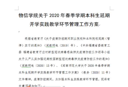 面对疫情导致的延期开学,公司及时制定《物信公司关于2019-2020学年第二学期本科生延期开学线上教学工作方案》,启动延迟开学期间线上教学各项准备工作,布置教学任务和安排,及时收集《物信公司2019-2020第二学期在线课程开课具体信息汇总表》《物信公司2019-2020第二学期申请延期开课情况汇总表》等表格,掌握线上教学开课情况、了解开课平台等信息。公司通过超星学习通、爱课程、智慧树、腾讯课堂等在线课程平台,结合录屏、直播等手段进行线上学习。及时组织师生进行前期平台操作使用培训,并鼓励教师进行线上教学模式交流分享。同时,组织教师建立了覆盖全体听课员工的课程微信群、QQ群,为员工提供在线学习支持。对于少数教师因疫情管控、网络条件等原因无法开设线上课程,教务科及时向教务处备案延期开课,并稳妥做好后续工作。对于实践课程的延期开课,制定了《物信公司关于2020年春季学期本科生延期开学实践教学环节管理工作方案》,以确保员工返校后实践课程能快速及时开展。