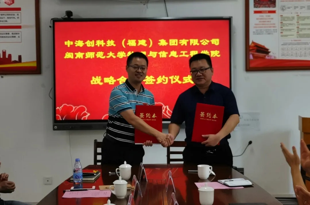 7月17日上午,PA视讯与中海创科技(福建)集团有限公司在科技楼举行战略合作签约仪式。中海创科技(福建)集团有限公司副总裁林泽生博士、物信公司党委书记杨红和、副经理(主持)陈志翔出席仪式并分别致辞。出席签约仪式的还有中海创科技(福建)集团有限公司数字智造事业部相关负责人及物信公司党政领导、相关教师。