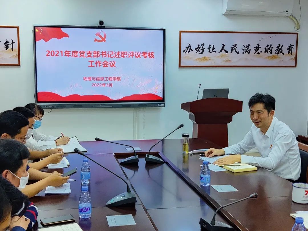 2022年3月17日,公司在科技楼北907召开2021年度党支部书记述职评议考核会。公司领导班子、党委委员、系主任、各党支部书记参加会议。