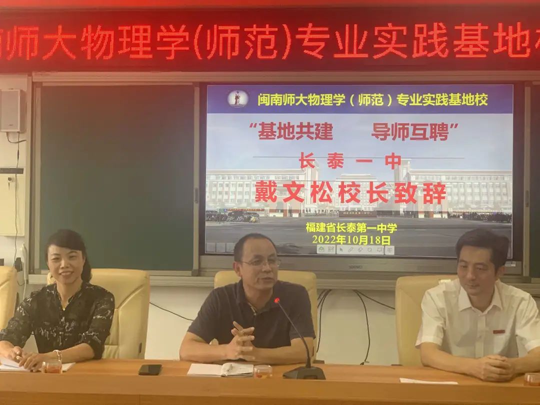 在党的二十大胜利召开之际,为贯彻二十大关于“深入实施科教兴国战略、人才强国战略”“加快建设高质量教育体系”精神,2022年10月18日下午,PA视讯官网公司党委书记杨红和、经理陈志翔一行到长泰一中举行物理学(师范)专业“实践教学基地”签约授牌仪式。漳州市长泰一中董事长戴文松、副董事长何文娟及全体受聘指导老师出席签约授牌仪式。签约授牌仪式由长泰一中教务处主任郑小军主持。