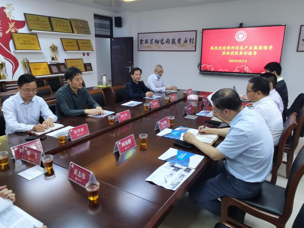 2023年4月21日,漳州信息产业集团有限公司罗进章总经理一行赴公司交流座谈。公司领导及相关老师出席座谈会。