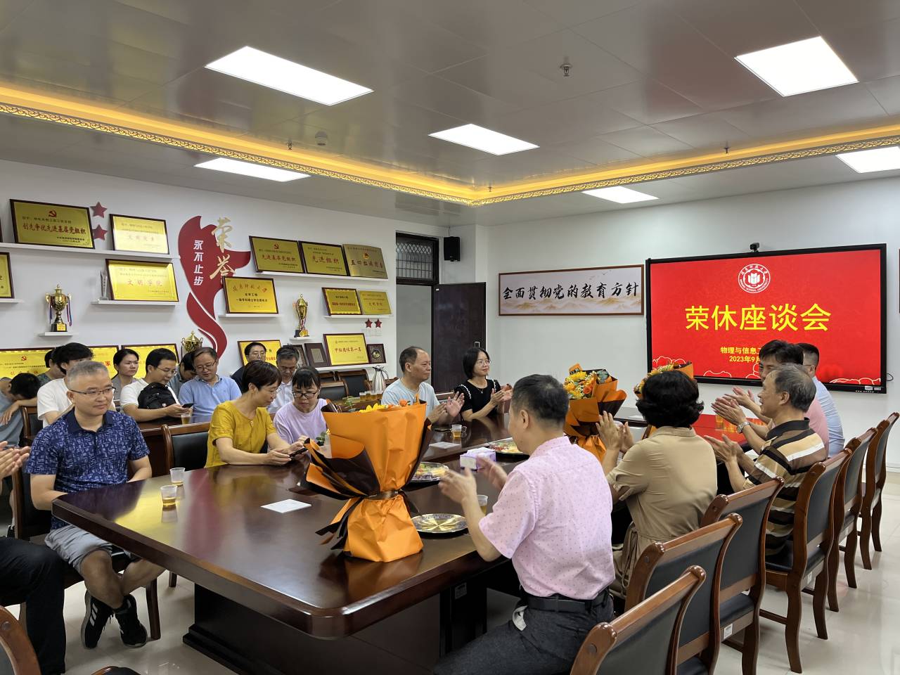 9月21日上午,公司在科技信息楼北907会议室举办了一场温馨而隆重的荣休座谈会,为辛勤耕耘数十载的2023年荣休教师献上最诚挚的敬意和感激。荣休教师付丽萍、郭海燕、洪清辉和公司领导班子成员、教师代表等参加了座谈会。会议由公司党委书记杨红和主持。
