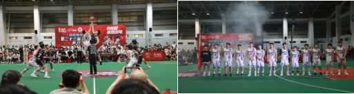 一声哨响,场上热烈的气氛瞬间被点燃。双方球员展开了激烈角逐,篮球场上熟练的运球,默契的投球,篮球框下你争我夺,你攻我守,激情飞扬,热情高涨,精彩场面不断上演。