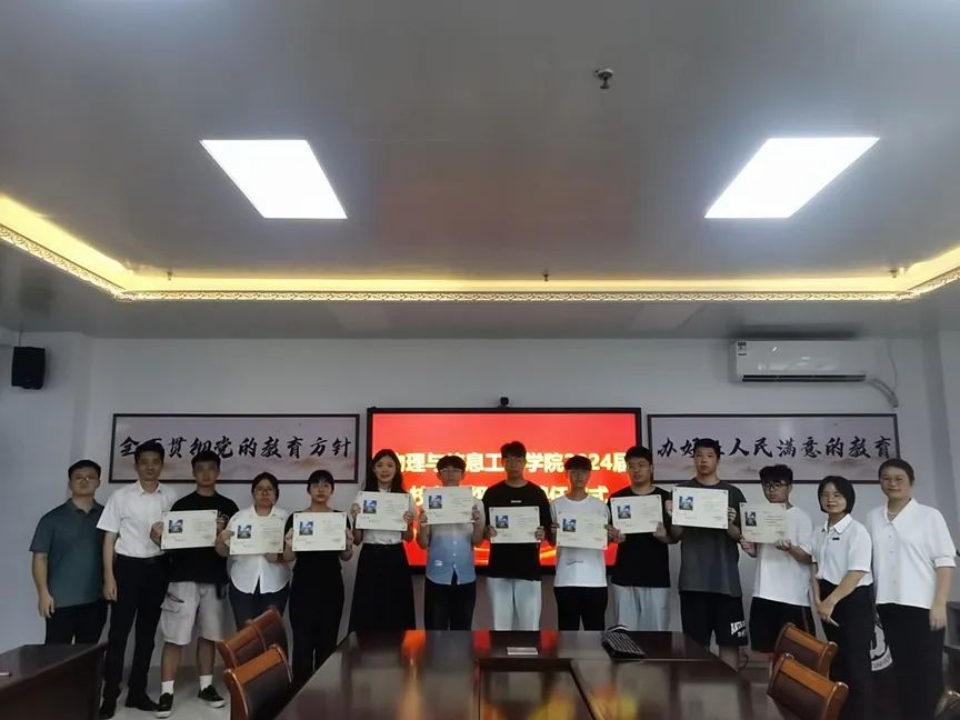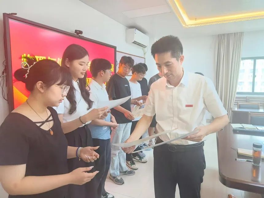 6月20日,公司于科技楼北907举行员工理事聘任仪式,公司党委书记杨红和、副书记陈丽新、团委书记杨超男及毕业班辅导员卢圳彬出席仪式。