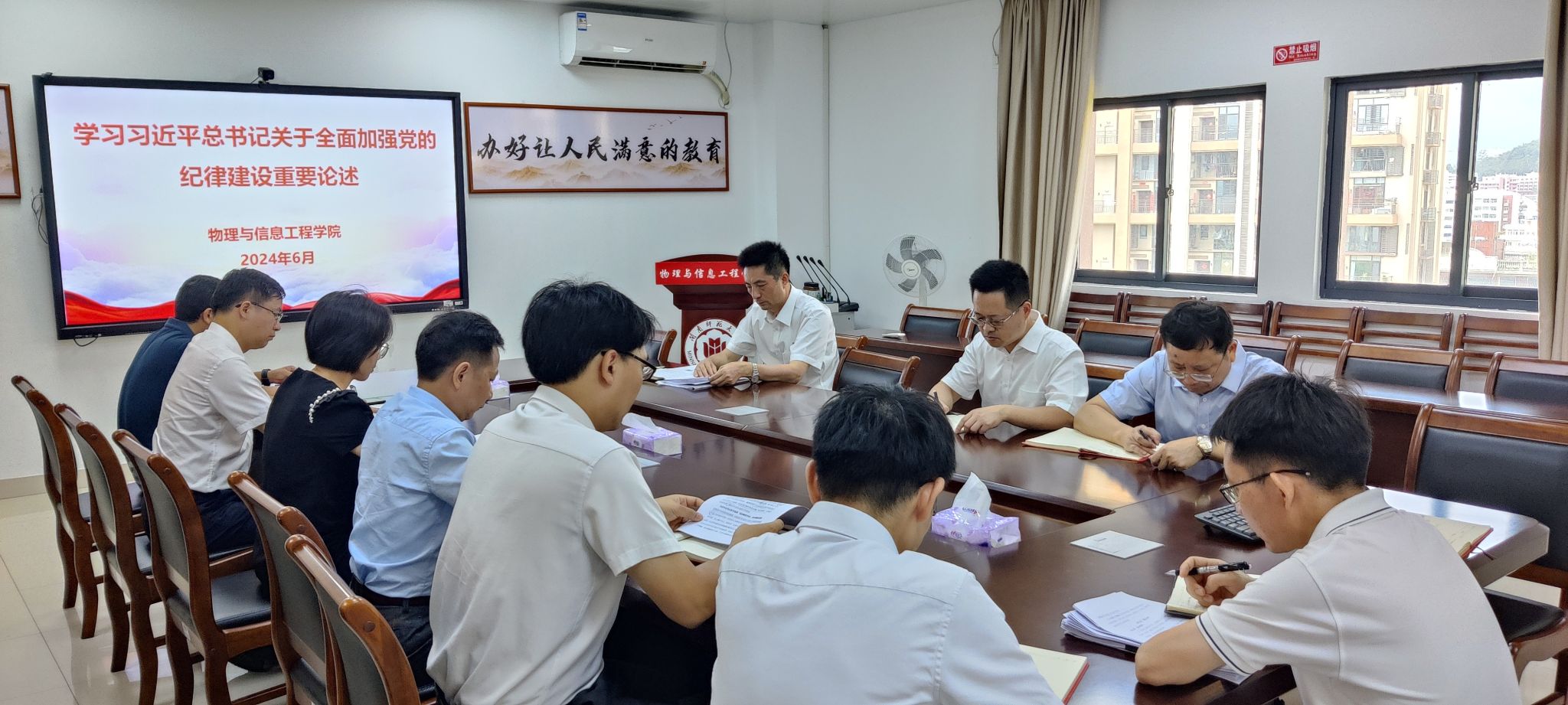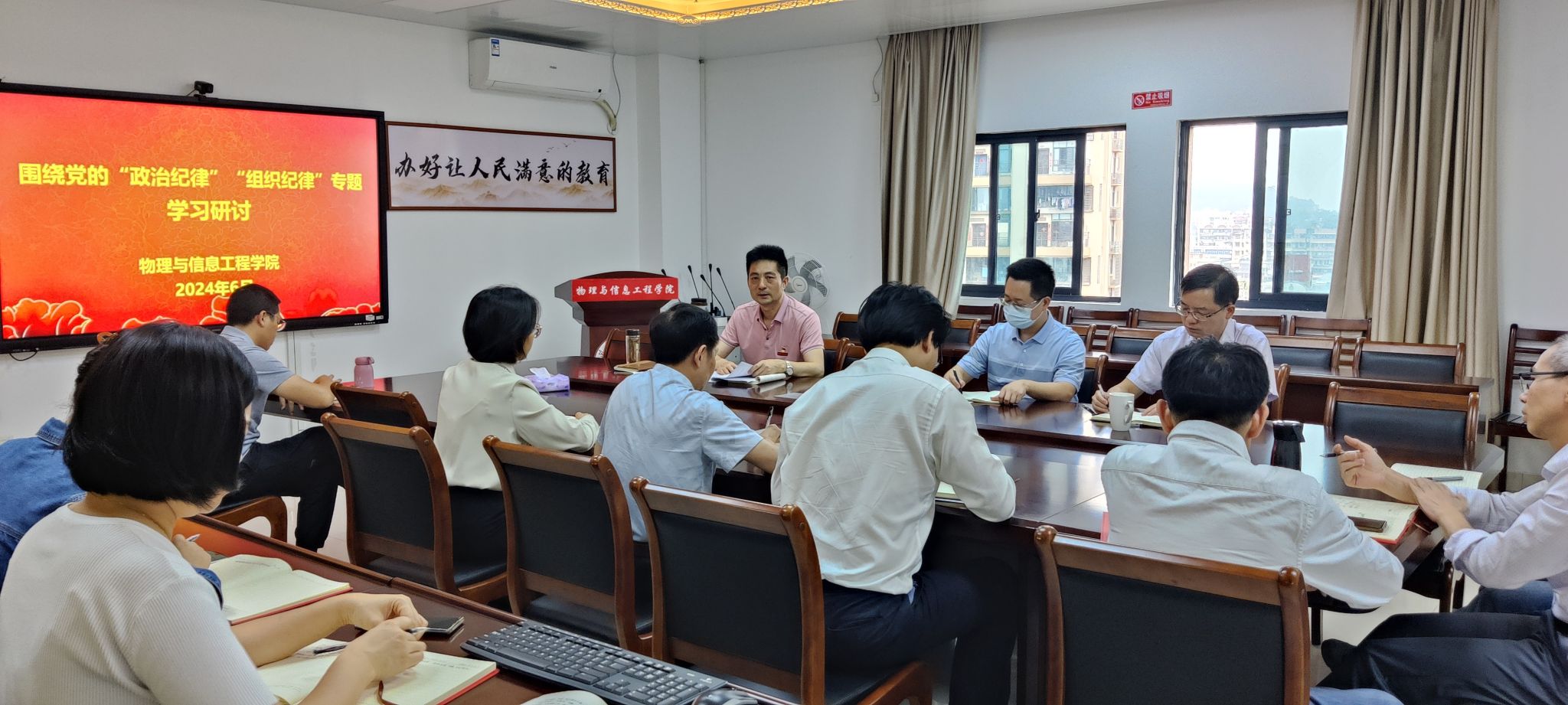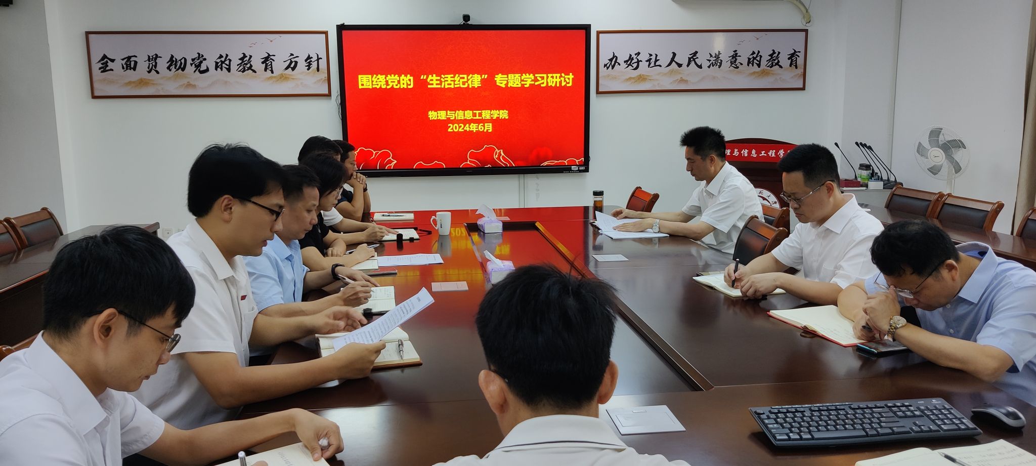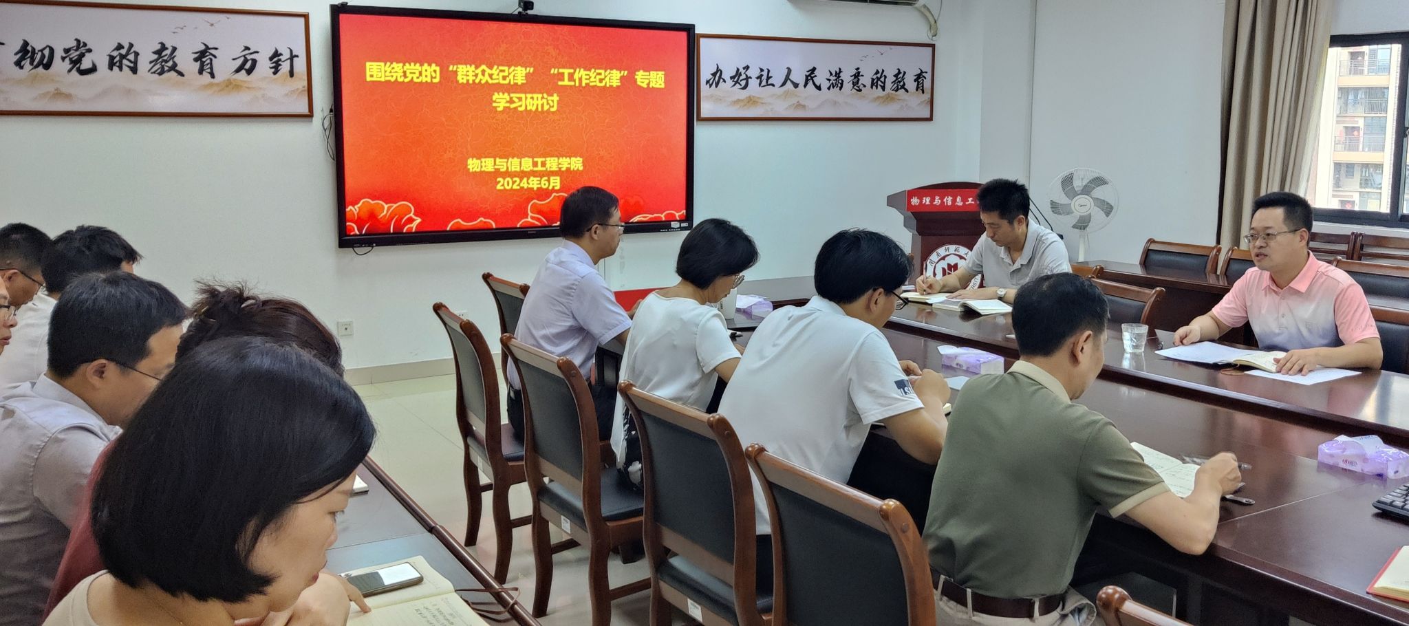 6月24日,公司党纪学习教育读书班围绕党的“群众纪律”“工作纪律”开展专题学习研讨。公司党委副书记、经理陈志翔作重点发言。陈志翔结合公司日常工作情况指出,作为公司管理者,认真服务好师生,帮助师生排忧解难是我们工作的重点,对一切涉及到师生切身利益的行为,都必须依法依规认真处理。要树立坚持以人民为中心的发展思想,坚持立党为公、执政为民,着力解决好人民群众急难愁盼问题。广大党员干部要心怀“国之大者”,围绕新时代新征程党的使命任务,积极履职尽责,勇于担当作为,立足岗位作贡献,努力创造经得起历史和人民检验的工作实绩。