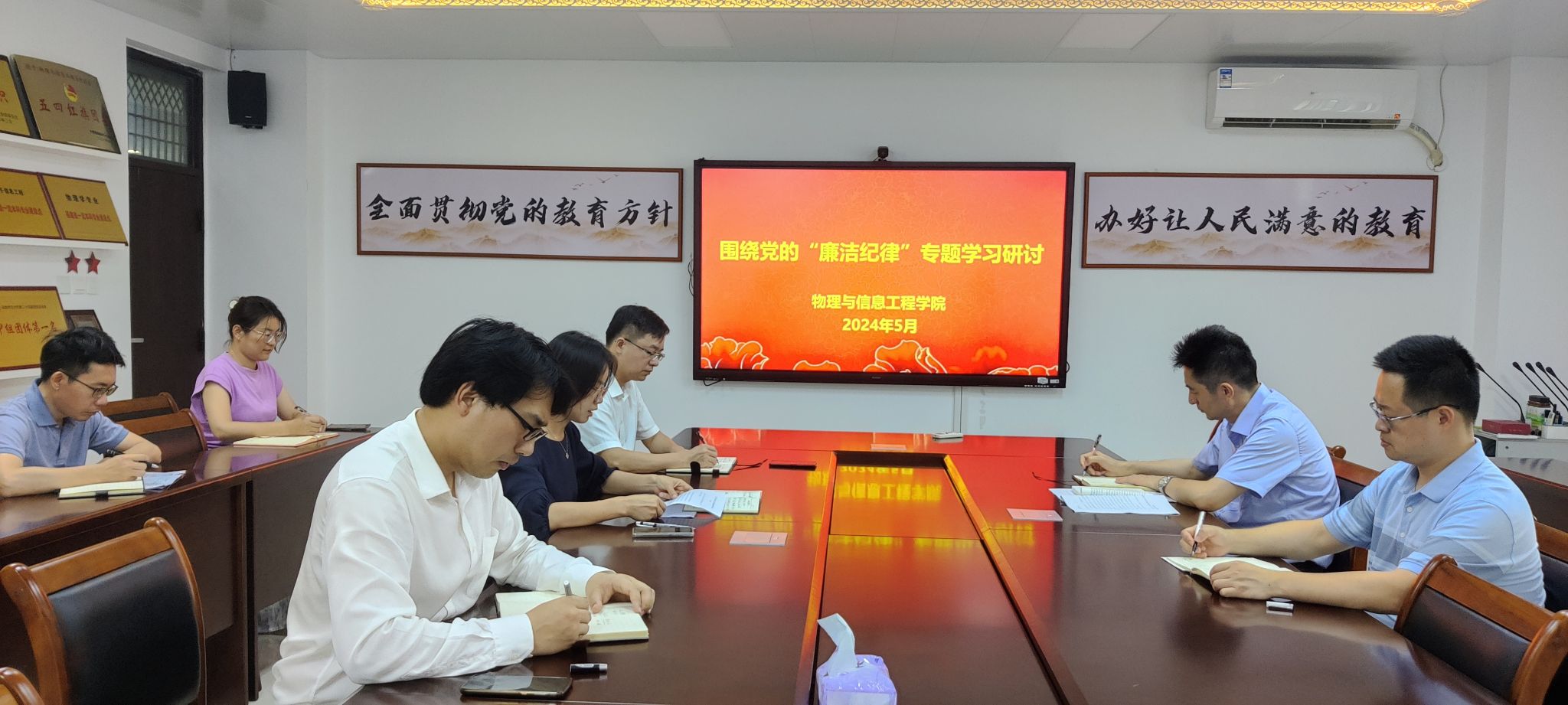 5月27日,公司党纪学习教育读书班围绕党的“廉洁纪律”开展专题学习研讨。公司党委副书记、纪委书记陈丽新作重点发言。陈丽新从习近平总书记在福州工作期间反腐故事讲起,强调党员、干部要保持清正廉洁的政治本色,要加强对全体党员教育监督管理,引导广大党员清白做人、干净做事,拒腐蚀、永不沾,做到心有所戒、行有所止。参会党员结合日常工作做交流发言,表示在今后的工作和生活中,认真学习廉政法规,加强廉政建设、提高党性修养,自觉维护党员良好形象。