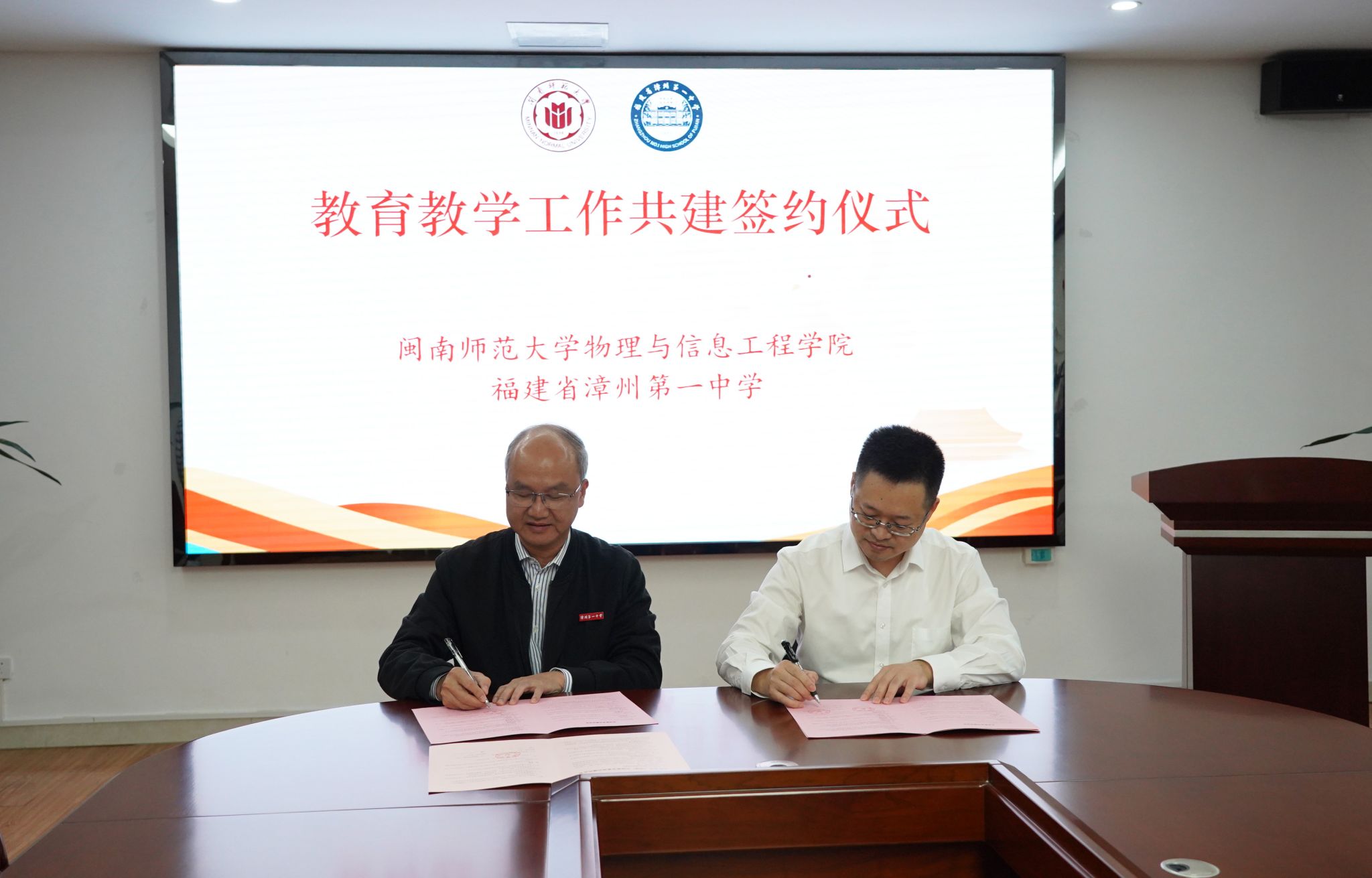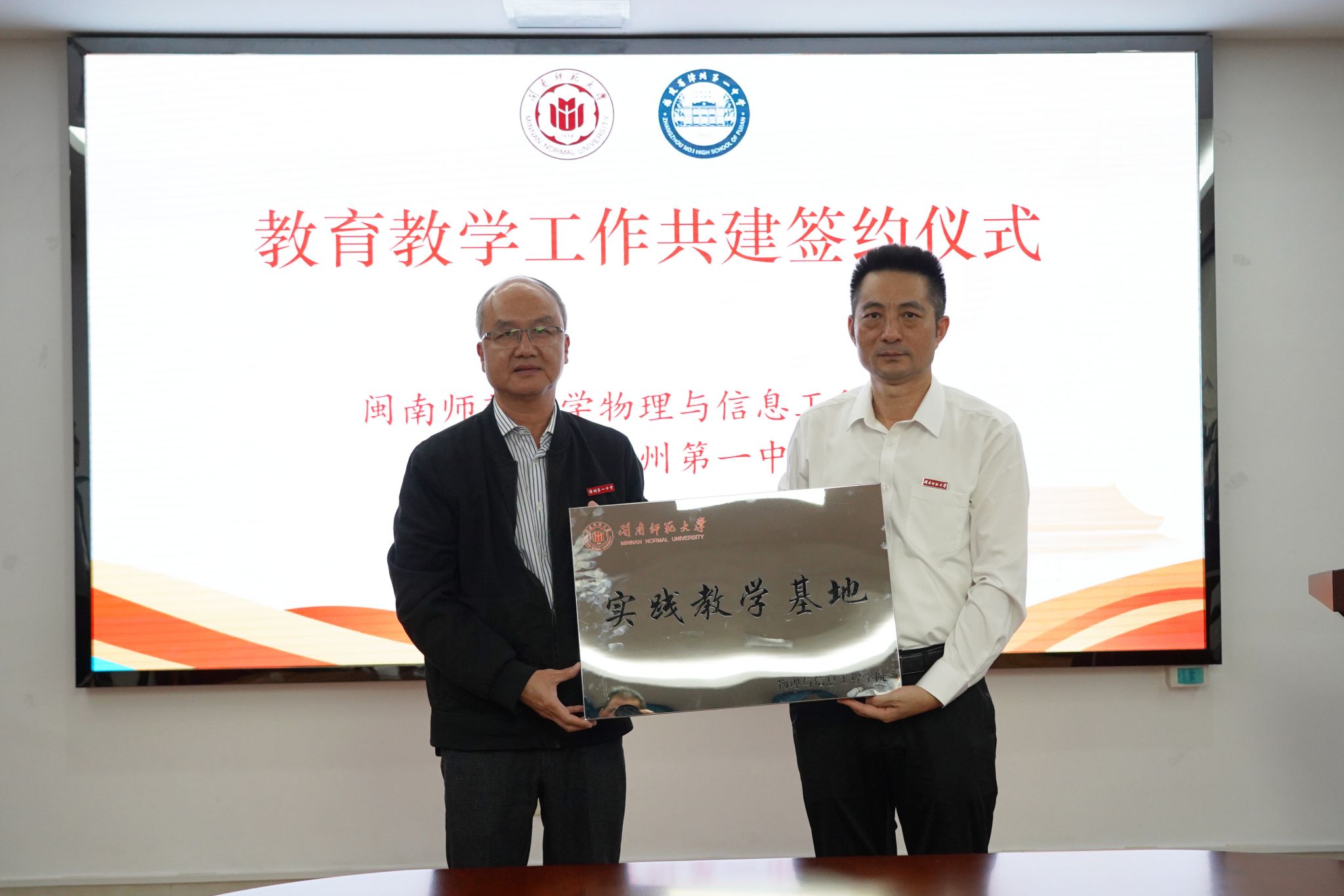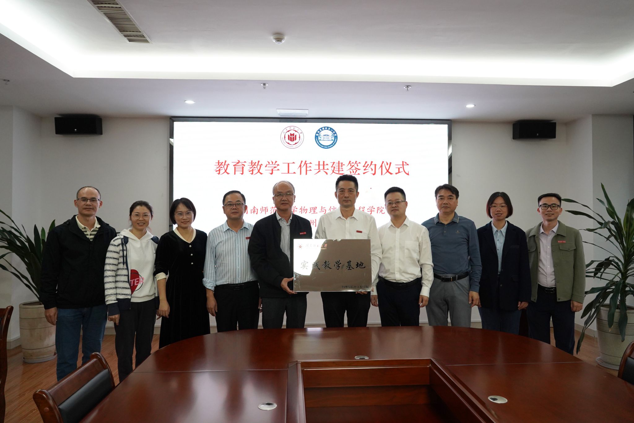 双方就当前教师教育和基础教育的发展需要,紧紧围绕教育资源整合、技术融合等关键问题进行深入协商。在热烈且愉快的研讨中,双方一致认为,合作共建对双方公司培养创新人才和提高办学质量具有重要的实践意义和战略价值,特别是在培养物理师范生、学科教学(物理)研究生、以及联合申报项目、中员工科技创新大赛、中学物理奥林匹克竞赛等方面具有直接的现实意义。随后,双方领导进行了签约仪式和授牌仪式。
