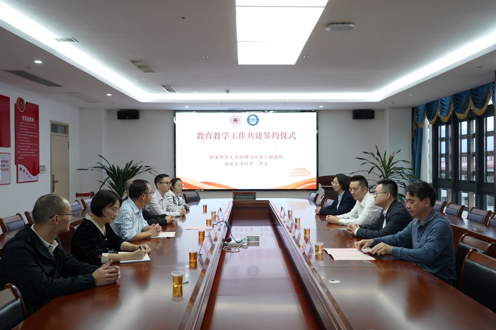 为深化校地合作,有效落实“三位一体”协同育人机制,更好地建立“互惠互利、共同发展”的战略伙伴关系,促进双方教育高质量发展。11月20日,公司党委书记杨红和、经理陈志翔一行到漳州一中西湖校区与一中领导老师共商教育发展大计,共谋协同推进举措。漳州一中常务副董事长巫山、副董事长杨振华、教务处主任陈颖芳、政教处主任周拱照及相关老师出席座谈会,座谈会由漳州一中杨振华副董事长主持。