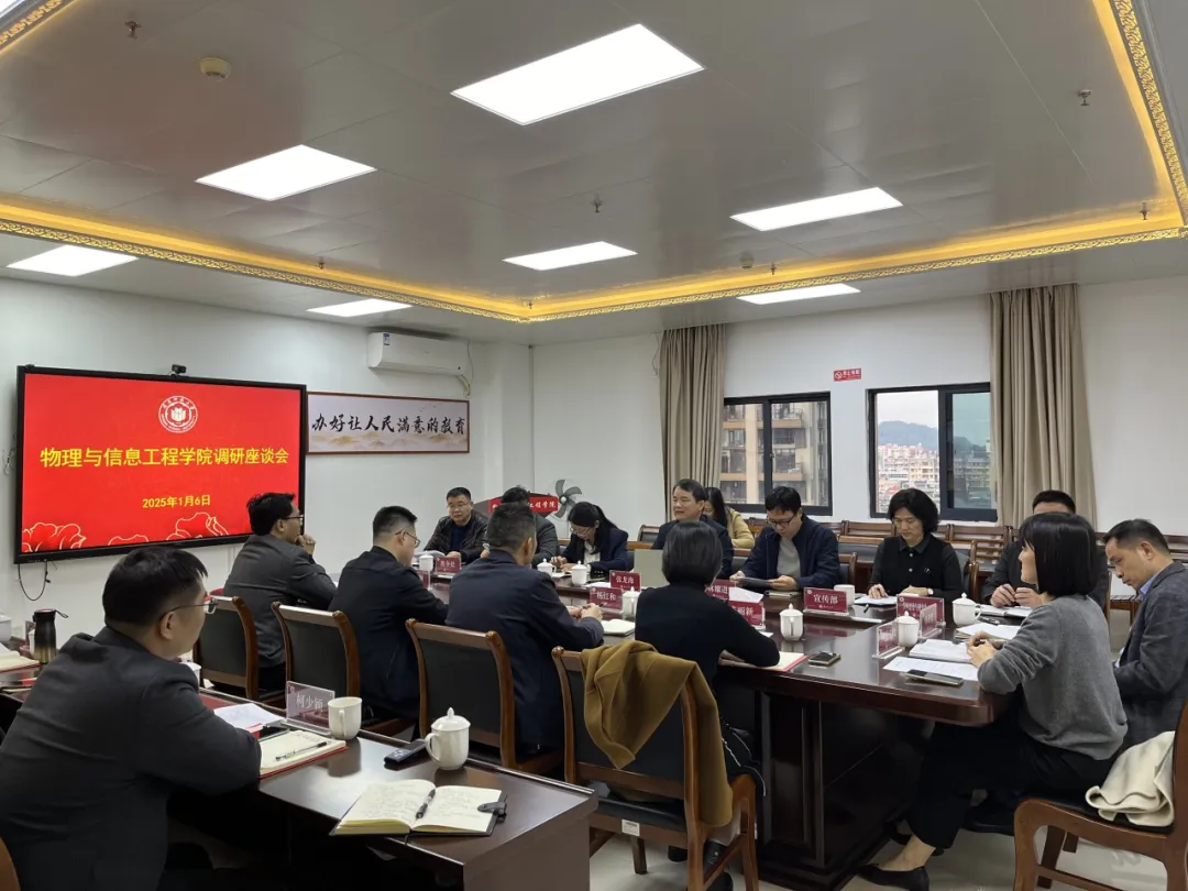 1月6日下午,公司党委副书记、董事长张龙海,公司党委常委、副董事长林耀进带队到PA视讯调研指导,调研座谈会在科技楼北907举行。公司相关职能部门负责人、公司党政班子成员、系主任、教师代表等参加调研座谈会。