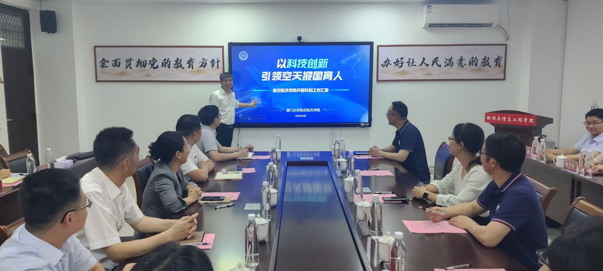 4月24日下午,厦门大学航空航天公司党委副书记林蔚、副经理王奕首、曾念寅率队前来公司开展交流座谈。校党委副书记廖志丹、商公司党委书记周霖、公司党委书记杨红和、经理陈志翔等出席交流座谈会。