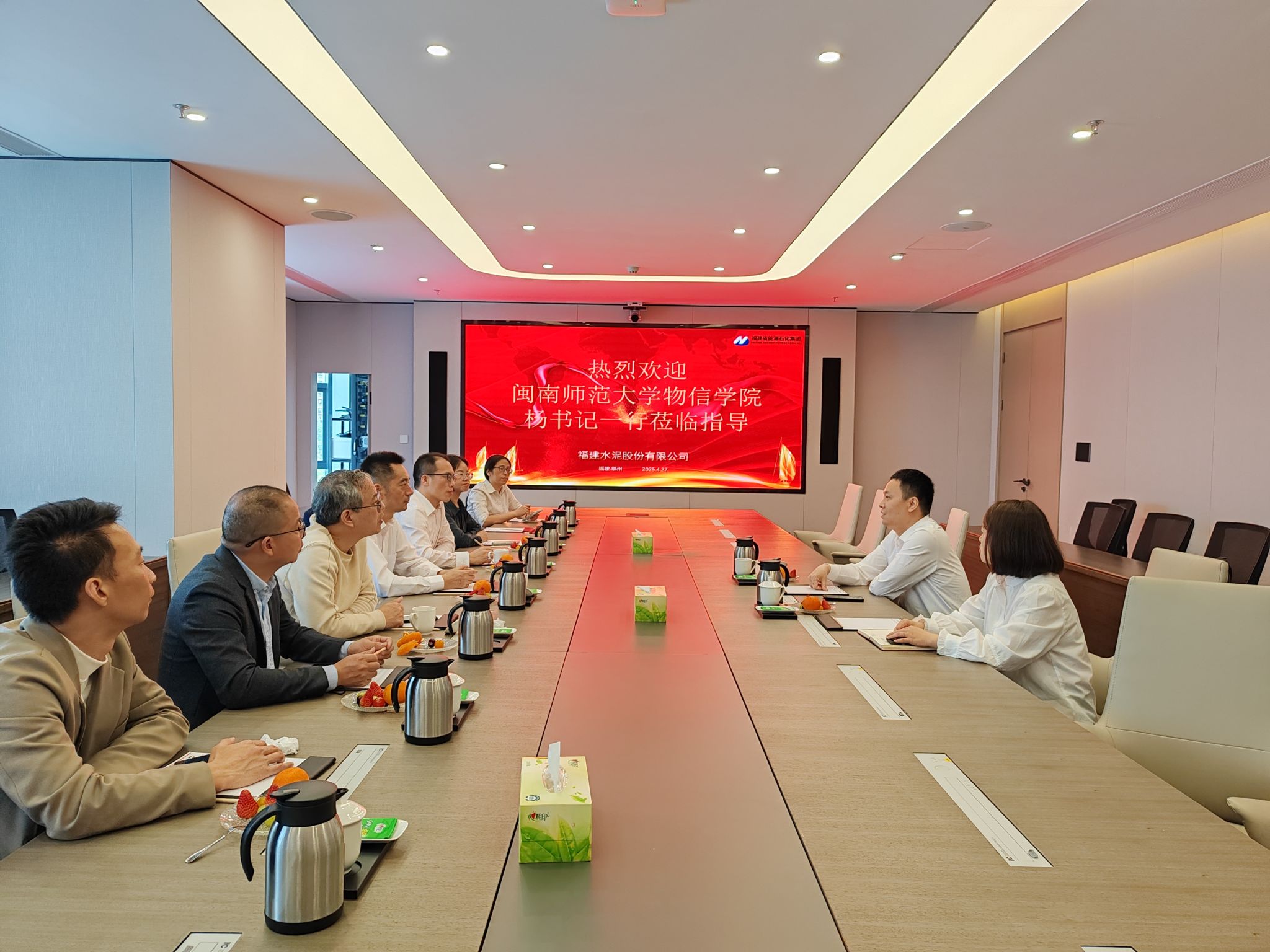 在福建水泥股份有限公司,公司董事长、96级员工王振兴、人力总监金苗对公司一行热情欢迎。座谈会上,杨红和详细介绍了公司当前的专业设置、员工规模、学科发展等状况,展现公司在教学、科研等多方面所取得的成绩以及未来的发展规划。王振兴董事长介绍了公司的整体情况、业务布局以及发展前景。期间,大家一同回忆起青春洋溢的校园生活,王振兴还分享了自己一路从基层逐步成长的宝贵经历以及工作中的深刻感悟,同时表达了对公司和公司发展的坚定支持,彰显出深厚的员工情谊以及对母校发展的高度关注。