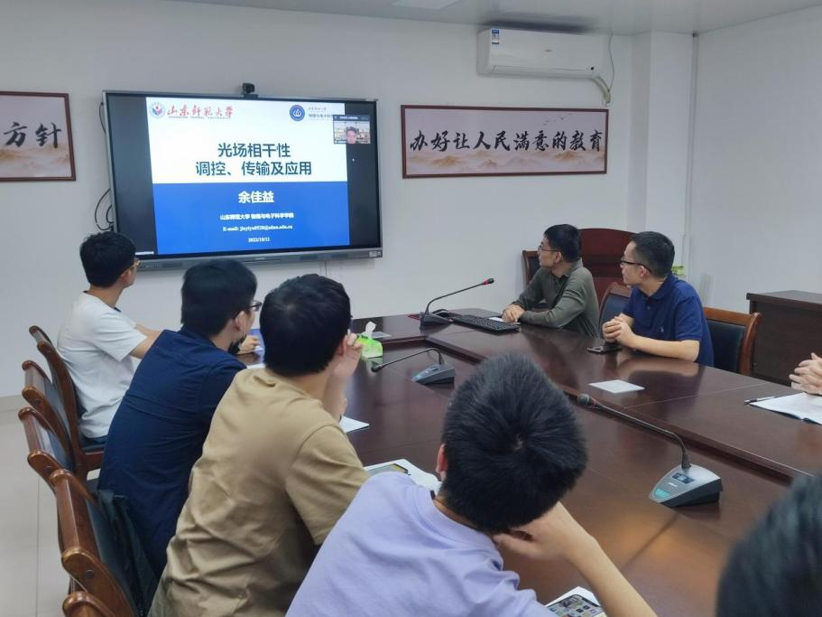 应公司邀请,10月11日晚上,山东师范大学物理与电子科学公司余佳益副教授为公司师生开展主题为“光场相干性调控及应用”的学术讲座。讲座于科北907进行,通过线上线下的方式进行交流,报告由经理助理徐星教授和物理系系主任张永涛教授共同主持。