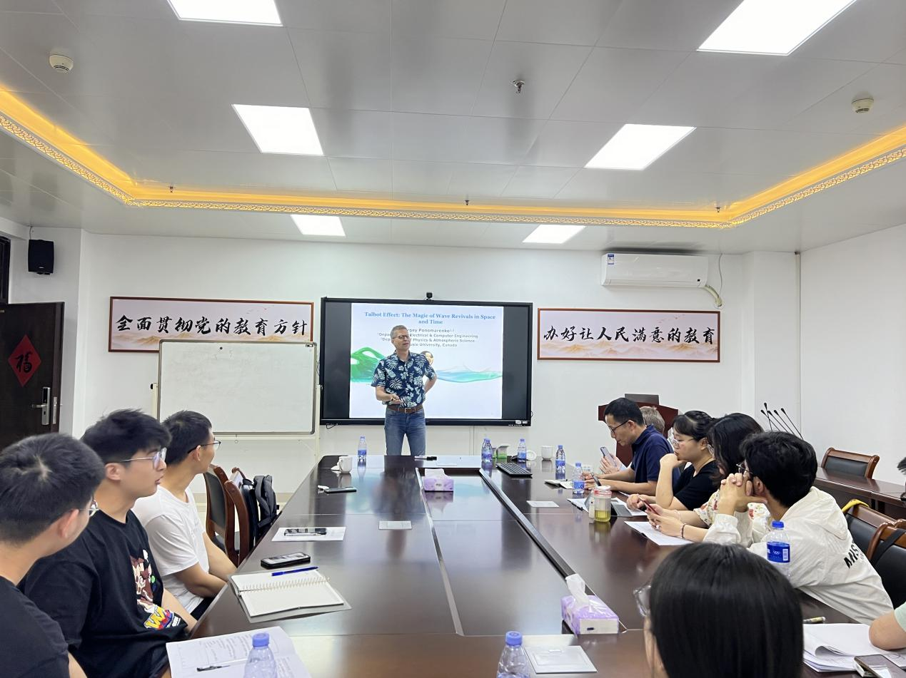 应PA视讯光场调控及其系统集成应用福建省高校重点实验室的邀请,5月21日下午,荷兰阿姆斯特丹自由大学教授Taco Dirk Visser和加拿大达尔豪斯大学教授Sergey Ponomarenko分别为公司光学工程专业研究生做了题为《Young’s Interference Experiment:The most beautiful ever..》和《Talbot Effect: The Magic of Wave Revivals in Space and Time》的学术报告,报告由张永涛教授主持。