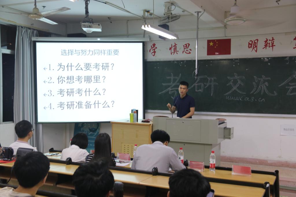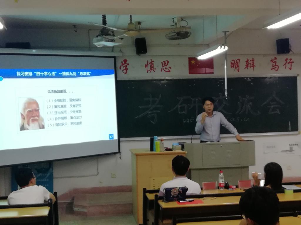 考研交流会伊始,余超群老师对公司2019年的就业、考研情况做了简要介绍,她提醒同学们应该根据自身的特点,正确对待考研和就业,并对考研志愿报考情况进行了指导。考研成功的学长学姐们更是结合自身的亲身经历,分别从找准自我定位,院校选择,考研准备时间,专业课复习技巧等方面进行了介绍,并向大家推荐了一些考研资料,希望同学们少走些弯路,找到适合自己的复习方法。最后,陈颖频老师向大家介绍了他独特的“独孤九剑式”考研宝典,勉励同学们正确对待考研和就业,及早规划、刻苦练功、追求卓越、笑傲江湖!