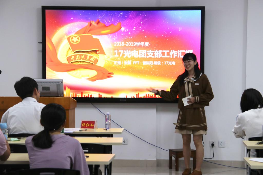由主持人介绍评选规则后,各班团支部代表依次通过PPT、视频,演讲等多种形式进行现场汇报,他们分别围绕政治思想建设、学风建设、志愿活动、日常管理、团支部特色等方面展开了丰富多彩的汇报演示。既有激情高昂的热情也不乏团结向上的温馨,豪情壮语中彰显出物信学子的青春魅力和锐意进取的精神面貌。其中17光电班在辅导员、班主任的带领下开展诸多学风建设活动和团支部活动,给人留下深刻印象。
