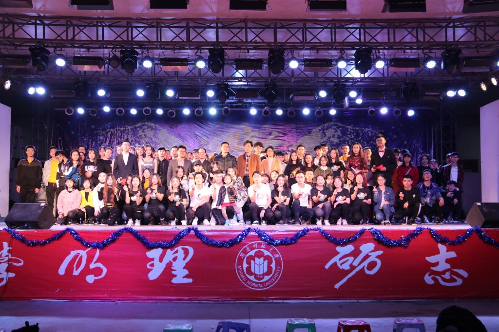 本次晚会涵盖了小品、舞蹈、音乐剧等多类节目。伴随着大家热烈的欢呼声,晚会在摇滚乐队的歌曲串烧中开场。暖场节目结束,晚会正式开始:小品《小城大爱》讲述了爱情故事与梦想,武术协会的武术表演和教科院民舞队的舞蹈《生命的颜色》,一刚一柔,展现青春魅力。