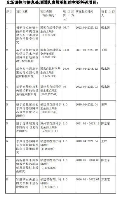 光场调控与信息处理方向面向新一代信息技术、以及福建省先进制造业强省、海洋强省的新产业发展需求,探索光场多参量调控及多维信息感知测量的基础科学问题,以及与新能源、生命科学、光学计算、材料科学、大气及海洋通信等领域的交叉。主要研究方向包括:新型光场多维度构建、调控及表征;光学超构表面等微纳结构设计;信息处理系统的智能计算及优化;新型医学光学诊疗方法与仪器。实验室成员主持国家自然科学基金项目3项,主持和参与国家级、省级科研项目10余项;在国际权威学术期刊发表SCI收录论文40余篇,多项研究成果获省市级奖励。